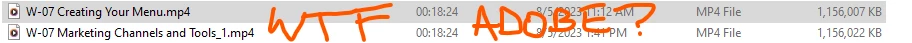 2. Some videos exported at random lengths that had nothing to do with the video I was exporting. I thought this was a setting issue in Adobe Premiere Export Tab at first so I ensured it was all set correctly and reexported everything. That was a mistake. That just showed me all the other problems with Adobe Premiere Pro 2023 export using media encoder. You can see what I mean in the images below.