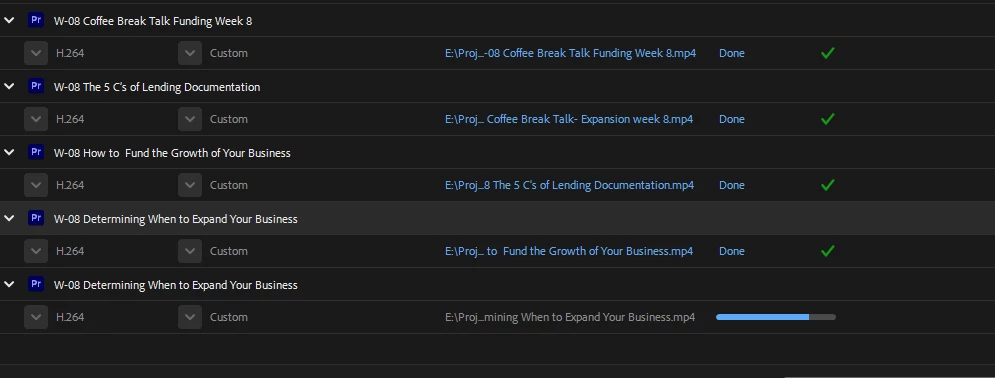 Here is what first export looked like after i tried to export all. As you will see later some of these videos that exported aren't even the right video. It just picked the video after or before in the queue, exported it, and named it the video to be exported. This is serious code problems in export. Like some senior programmer is not checking the work being checked in for the code here.