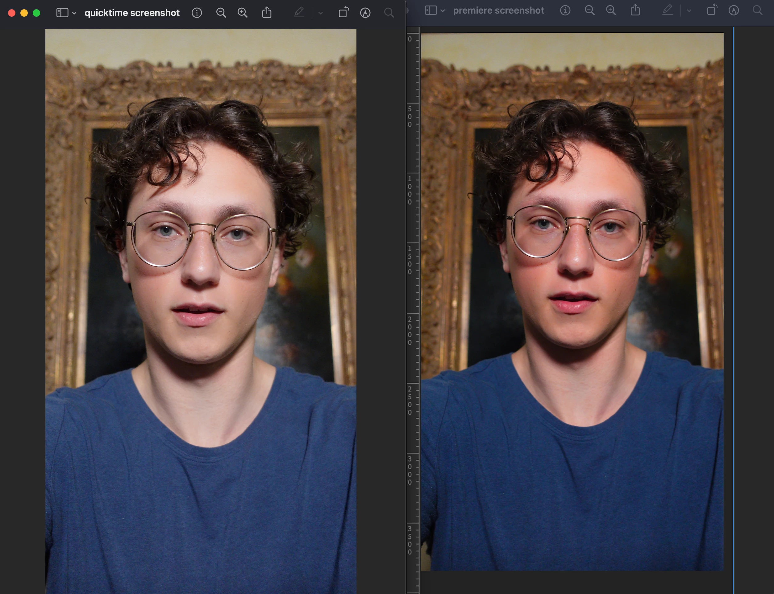 In this screenshot attached, the left is what the video looks like in quicktime. On the right is what the video looks like on my premiere timeline.