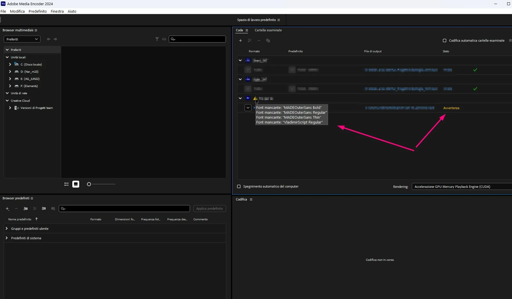 Premiere (Media encoder) reporting 'fonts not found' during export
