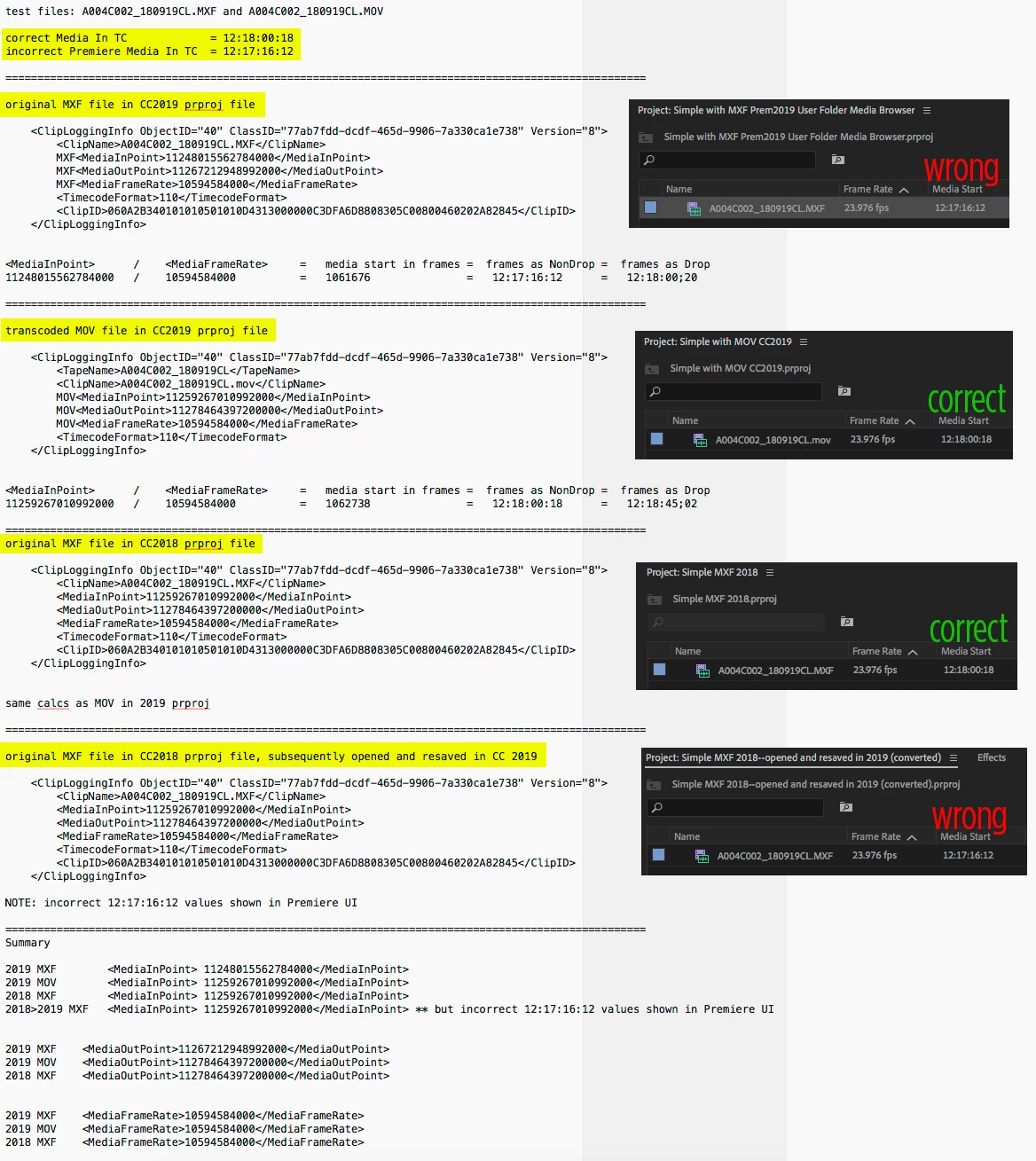 2. it misinterprets the Media Start timecode of MXF files when converting a CC2018 project file