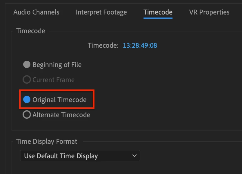 • If the Timecode is set to Alternate Timecode, switch it to Original Timecode