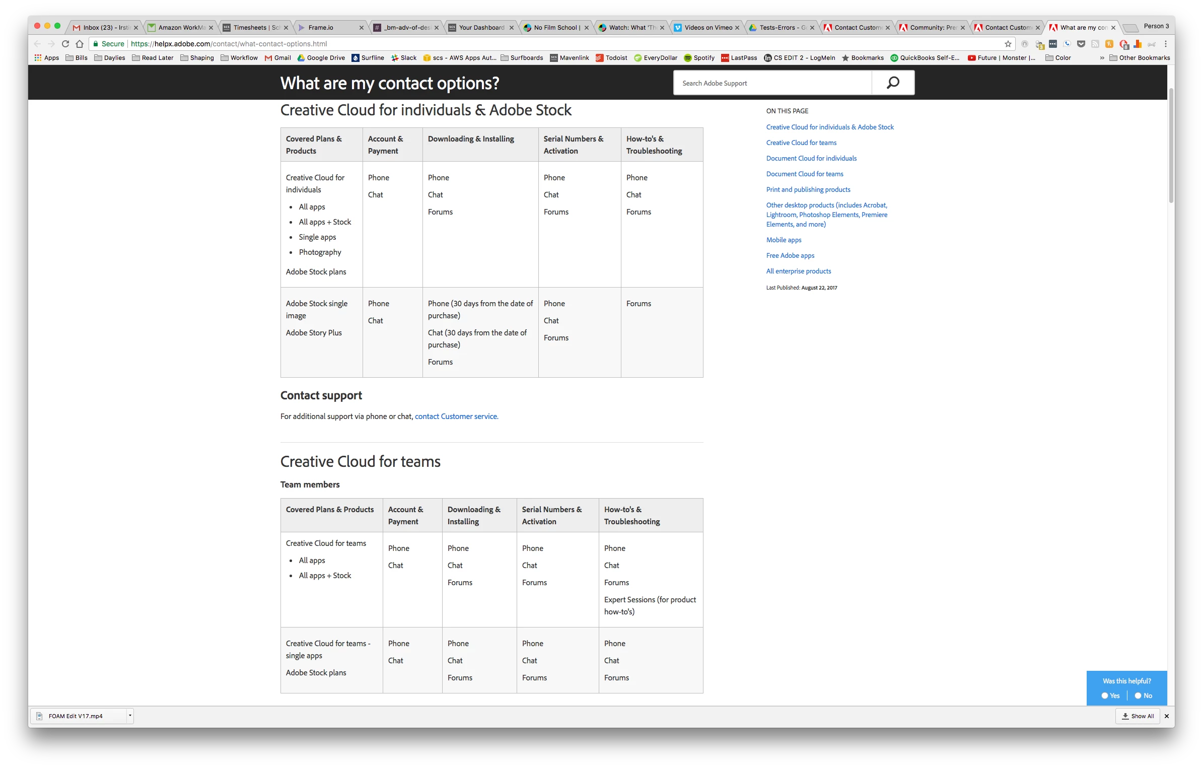 Pretty funny, I went to search for help on this topic and though the Adobe support page shows that there should be phone and chat support on all creative suite apps (see image), it continually will loop me back to the forums. After repeating this process about 6 times, I got fed up and figured Adobe must not have any phone or chat support at the moment, because if they did it would be nowhere near this difficult to find.