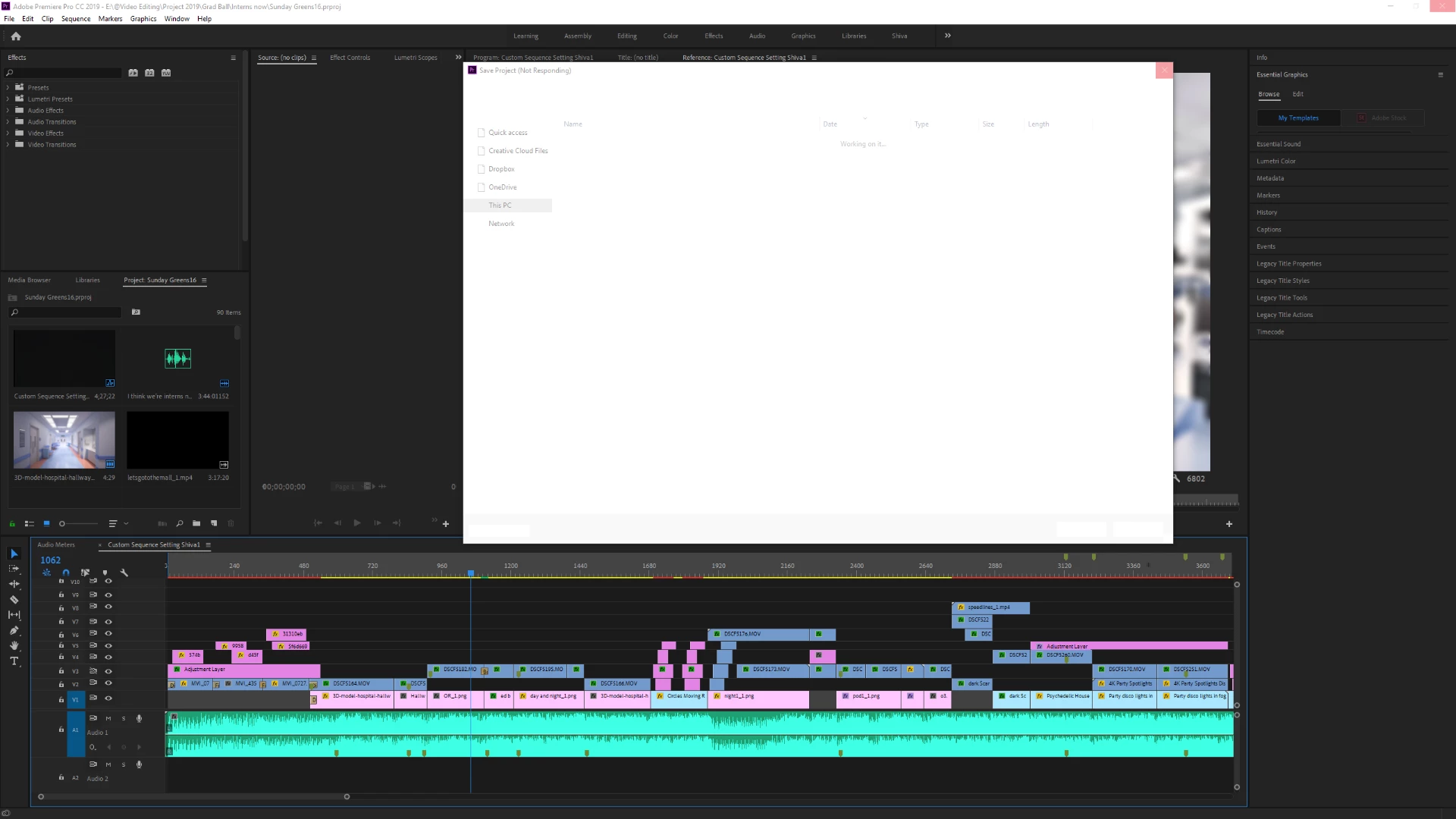 Everytime I click :"save as" in premiere pro, my mouse cursor turns into a loading circle and I can't do anything in Premiere Pro and I have to end the task in task manager. Anybody know a fix for this or the reason behind it? I have a higher end gaming pc.