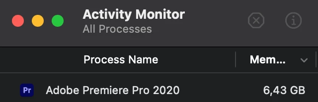 Recently I have been having a troublesome issue with Premiere Pro 2019 and was hoping to get some help. Without any reason I can find, in the middle of editing, Premiere will suddenly stop playing back any video. Occasionally audio will continue but that soon stops as well.  When this happens, within a matter of seconds, my RAM usage will basically sky rocket and max out my computer, going from 8 GB to around 55GB+ (see screenshot). At this point, I can only very slowly navigate the interface and save the project, still with no playback or frame updates when dragging or attempting to move the playhead. Usually, however, if I try to do anything, the program will crash. Strangely, if I leave my computer idle, after 10-20 minutes, playback may suddenly resume and RAM usage quickly drops to normal as if nothing happened. I can continue working at that point until it happens again. Sometimes I can get 2 or 3 hours of work, sometimes only 5 minutes, until the issue returns. I am not doing anything complex at this point. So far, I've just been importing footage, cutting and nesting different takes, and putting a few multicam sequences together. As such, I've mostly noticed this issue simply when playing through source material.