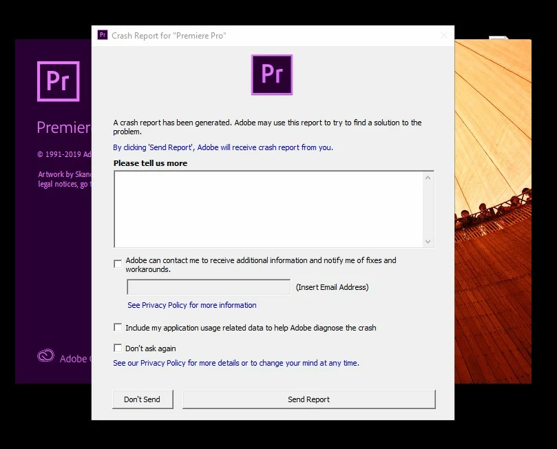 On opening this notification occurs. When I send the report, Premiere Pro crashes immediately.