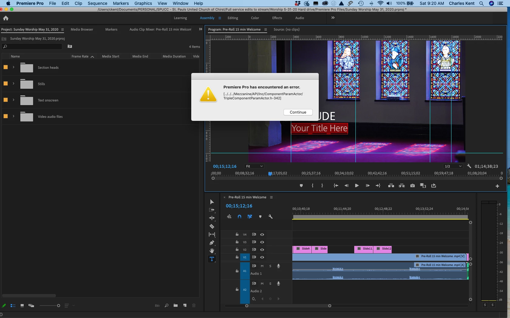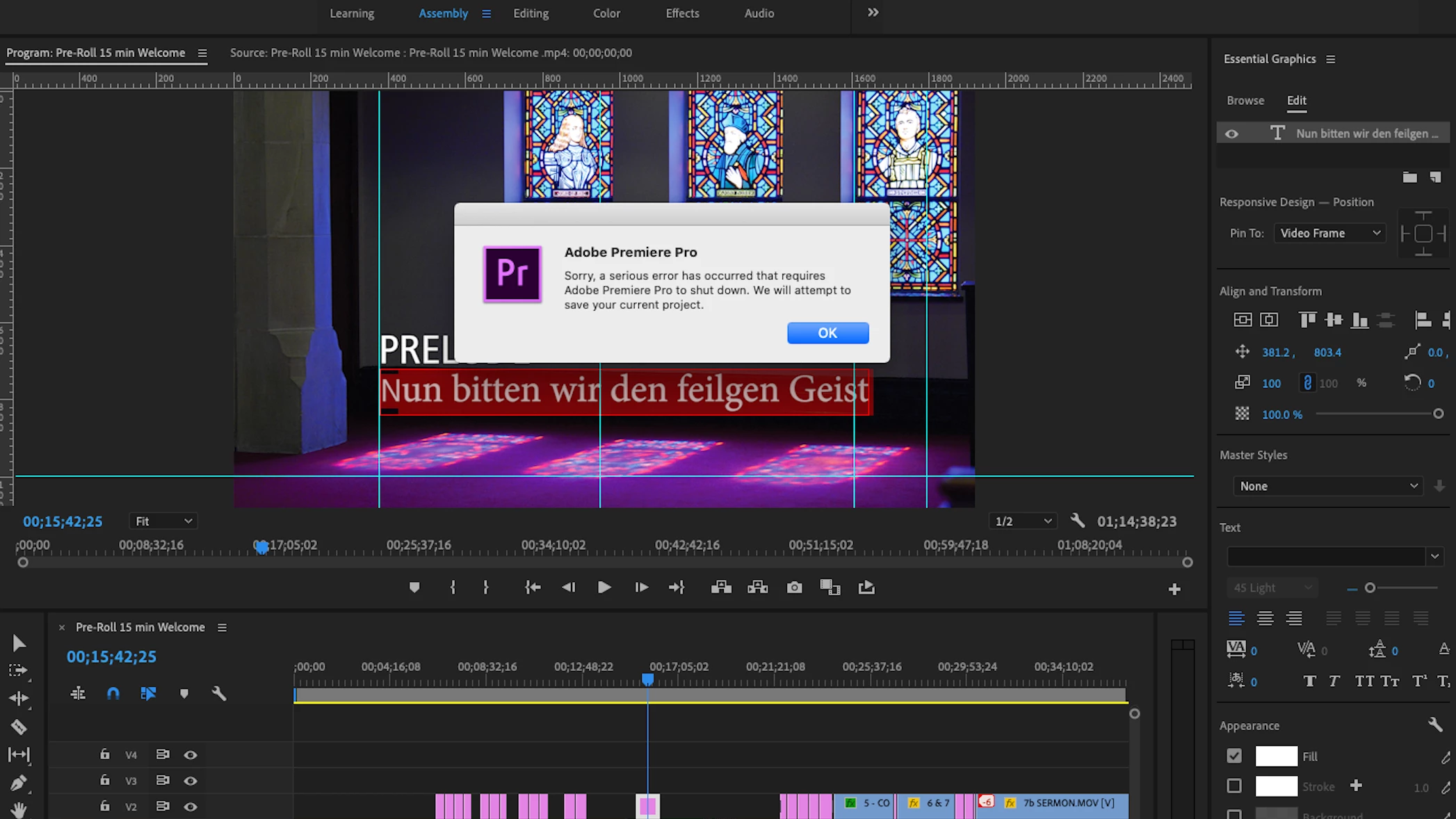 Premiere Pro 2020 crashes upon using titles in Essential Graphics