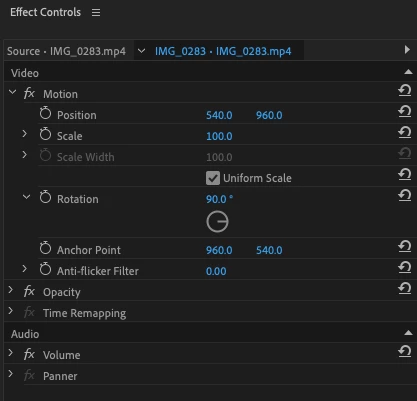 Premiere Pro 2020: rotating a video in portrait mode to landscape