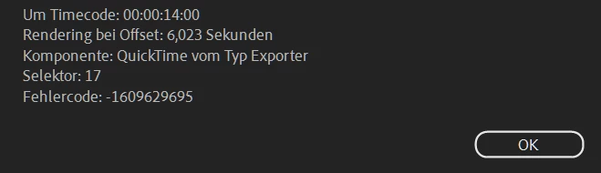Premiere Pro 2022 (Windows) error code -1609629695 No Export possible!