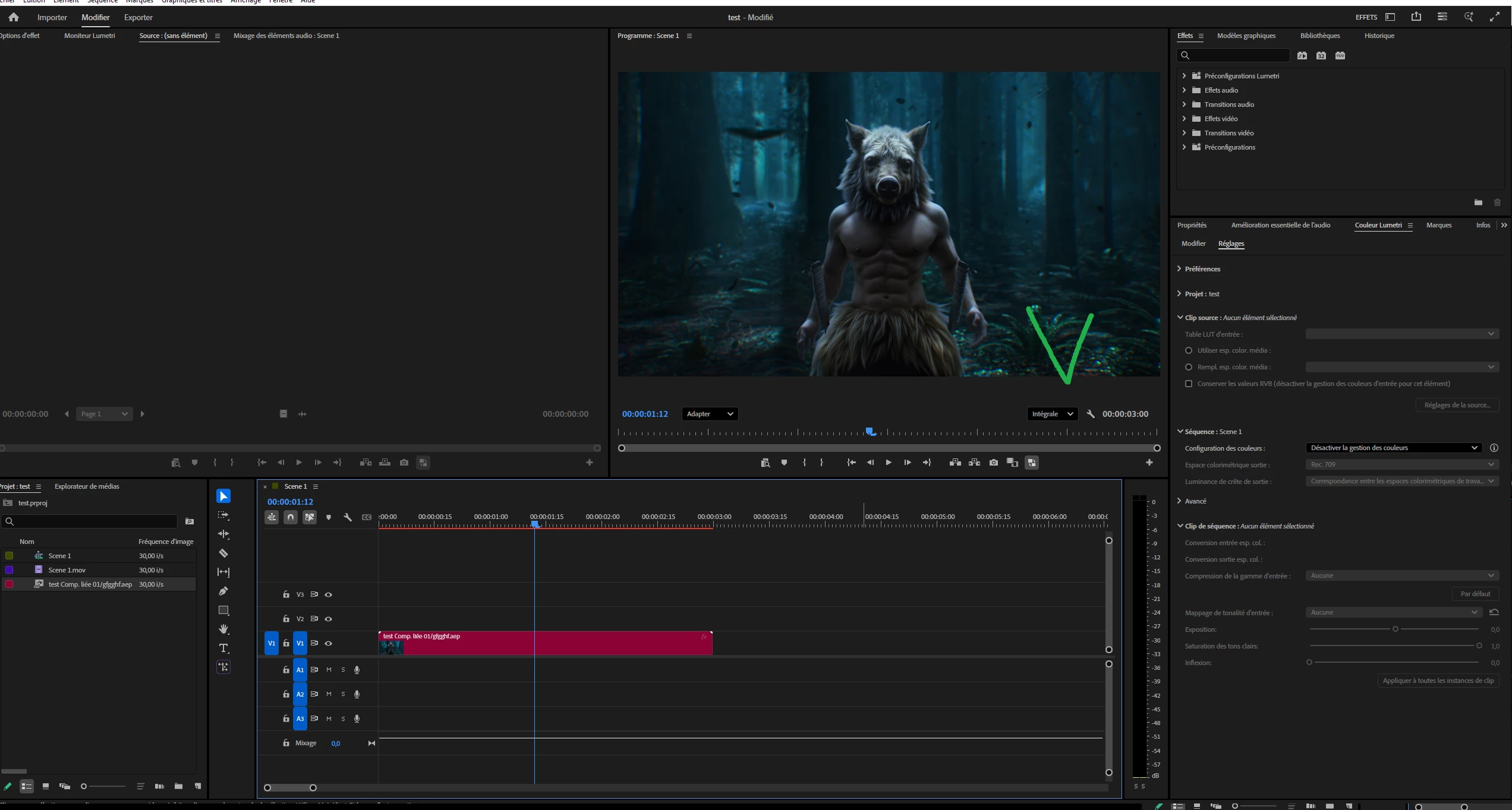 Ce problème n’existait pas sur les versions 2024, où les couleurs étaient correctement conservées automatiquement via Dynamic Link.