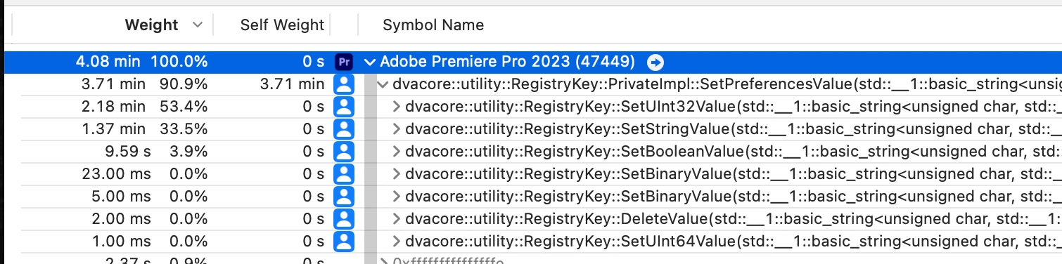 It is particularly jarring that performance should be so poor: we went through the trouble of adoping the most recent APIs for dynamic loading and registration of plugins, via PluginDataEntryFunction and xGPUFilterEntry. Performance is even worse if we switch our software to its old method: installing hundreds of plug-ins as separate entities on disk, as we did pre-Premiere Pro 22 when dynamic plugin registration was added.