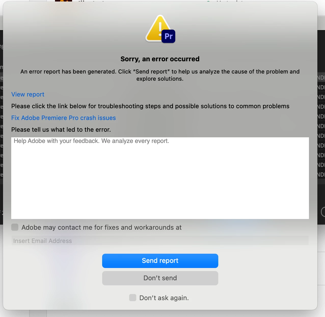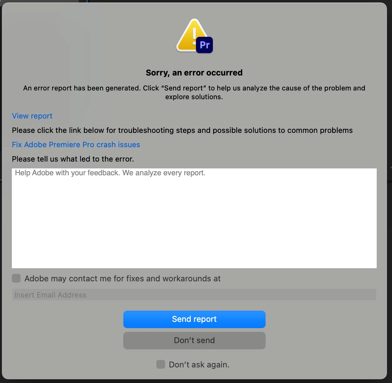 Premiere Pro 24.1 infinite loop crash