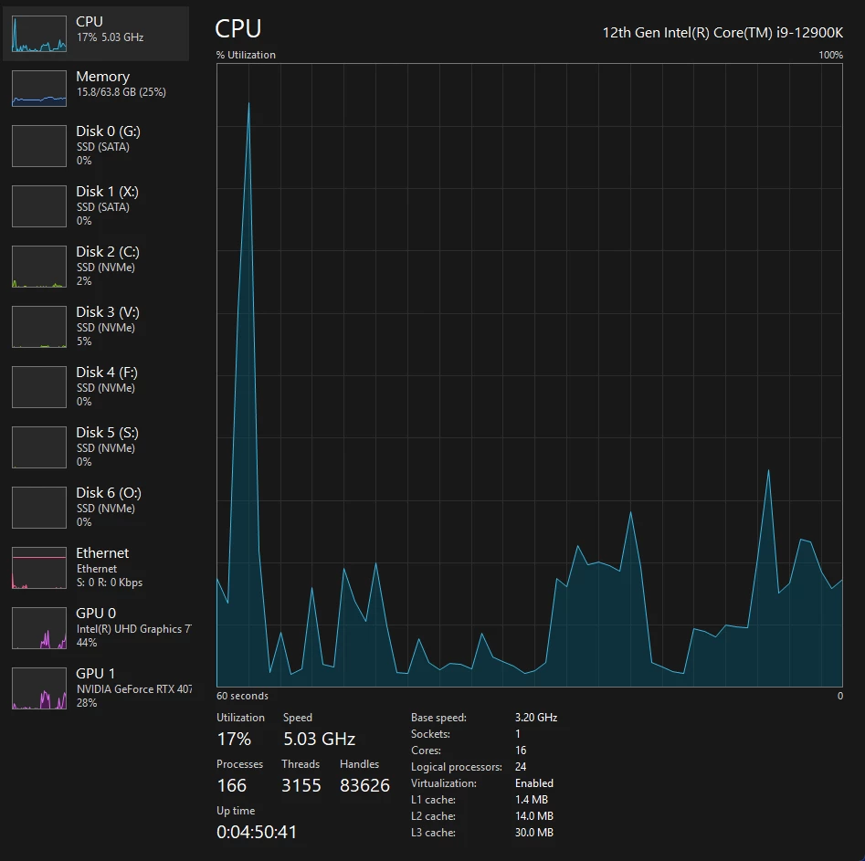 i7 14700K, RTX 4080, 64 Gb ram, SSDs, Win 11 24h2