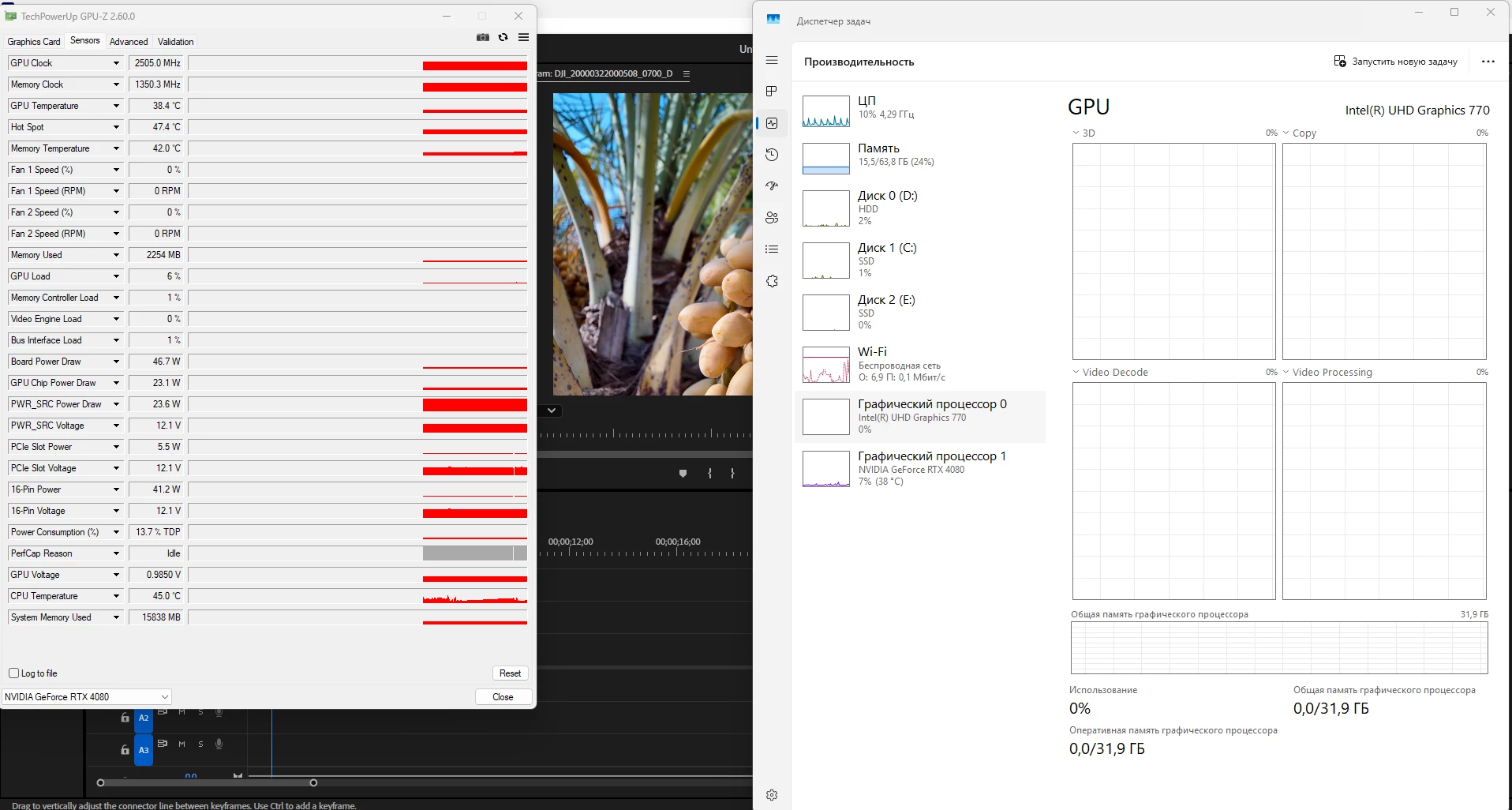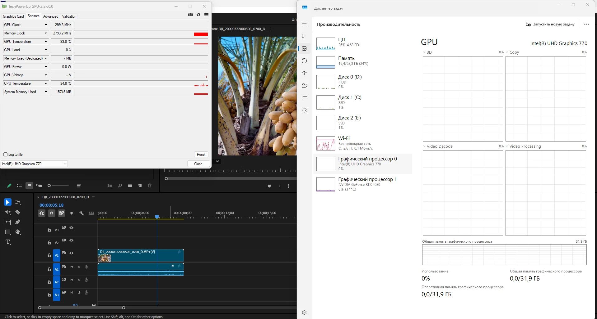 But I open Intel's Graphics software and see there that my iGPU not only works, it actually does something when I play back this video in Premiere Pro: