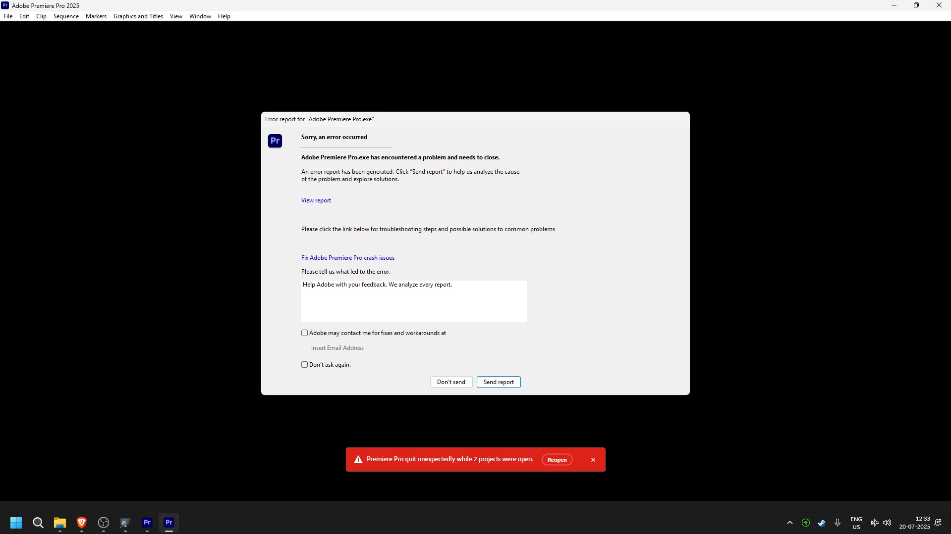 Premiere Pro 25 Crashes on Clicking New Project