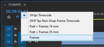 Premiere Pro CC 2019 displaying unknown timecode, and command-clicking it will only go to frames