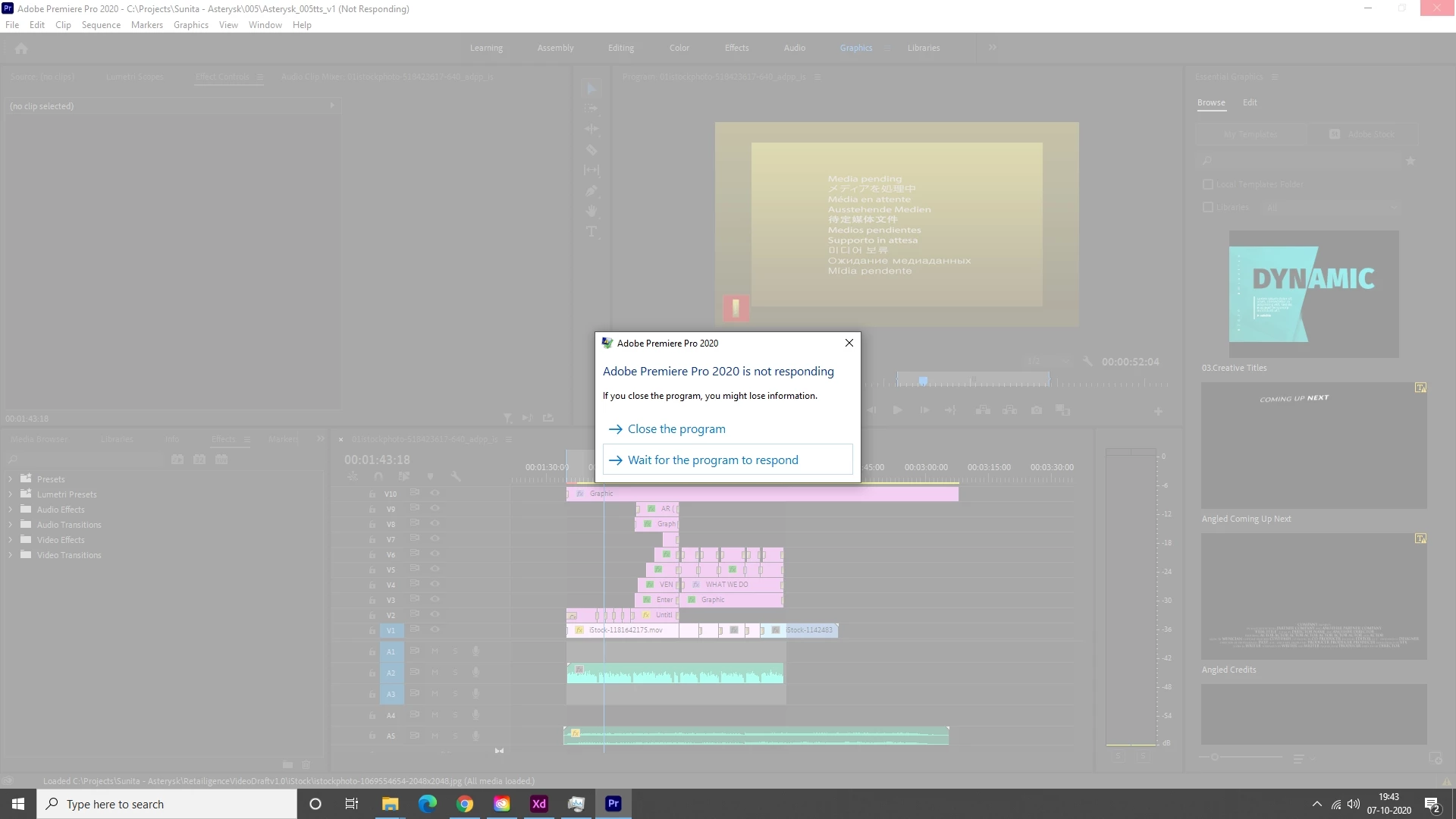 Mmalligarjunm25295792ParticipantForum|Forum|5 years agoOctober 7, 2020QuestionPremiere Pro CC crashes while rendering a videoForum|Forum|5 years agoOctober 7, 20202 replies176 viewsMy System ConfigurationProcessor - Intel Core i7-3770 CPU 3.40GHzRAM - 32GBOS - Windows 10GPU - Nvidia GeForce GT 730 Whenever I try to render a video not more than a minute 1080p with few Titles animation. Premiere Pro automatically closes, sometimes the whole system restarts. EditingPerformanceExportImportHardware or GPUFreeze or hangError or problemCrash
