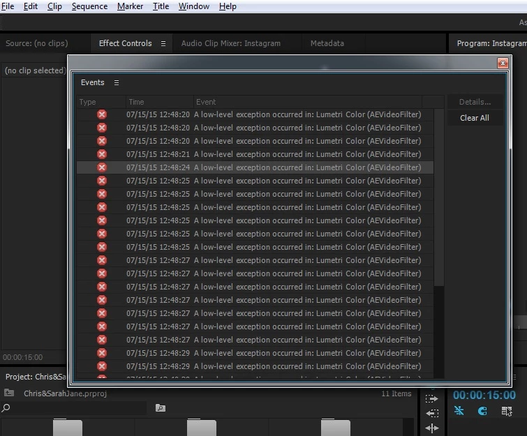 Premiere Pro CC Encoding Failed A low-level exception occurred in: Lumetri Color (AEVideoFilter)