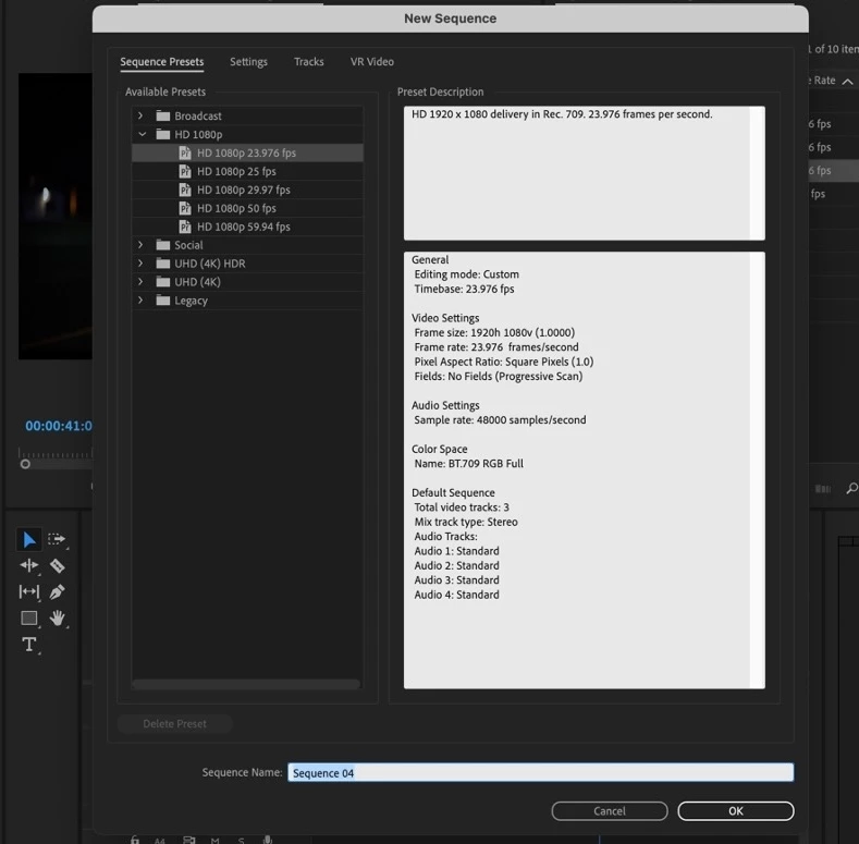 - New sequence presets