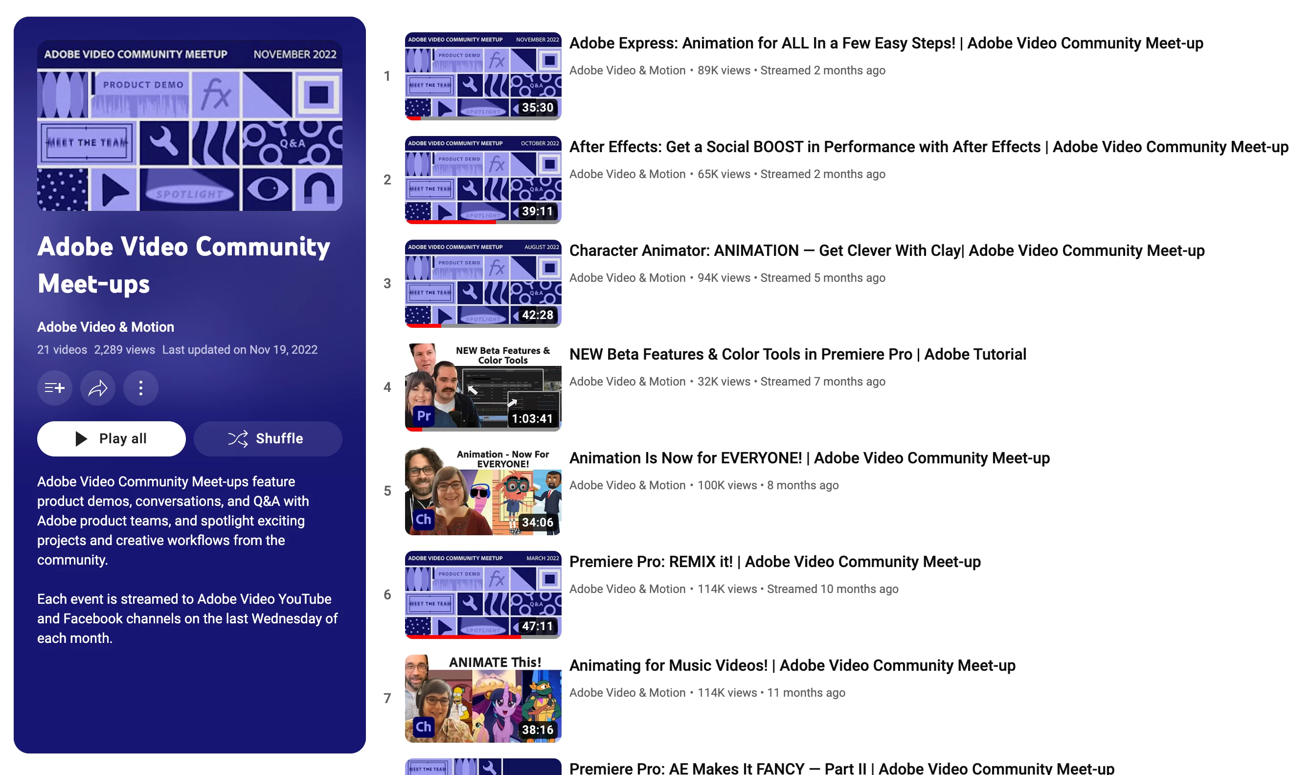 Online meetups held by the product team will be continuing. I will inform the community in advance of the next one. Stay tuned to pinned and featured posts for breaking news and events about Adobe Premiere Pro in this forum. To see past online meetups on YouTube, check out the channel here.