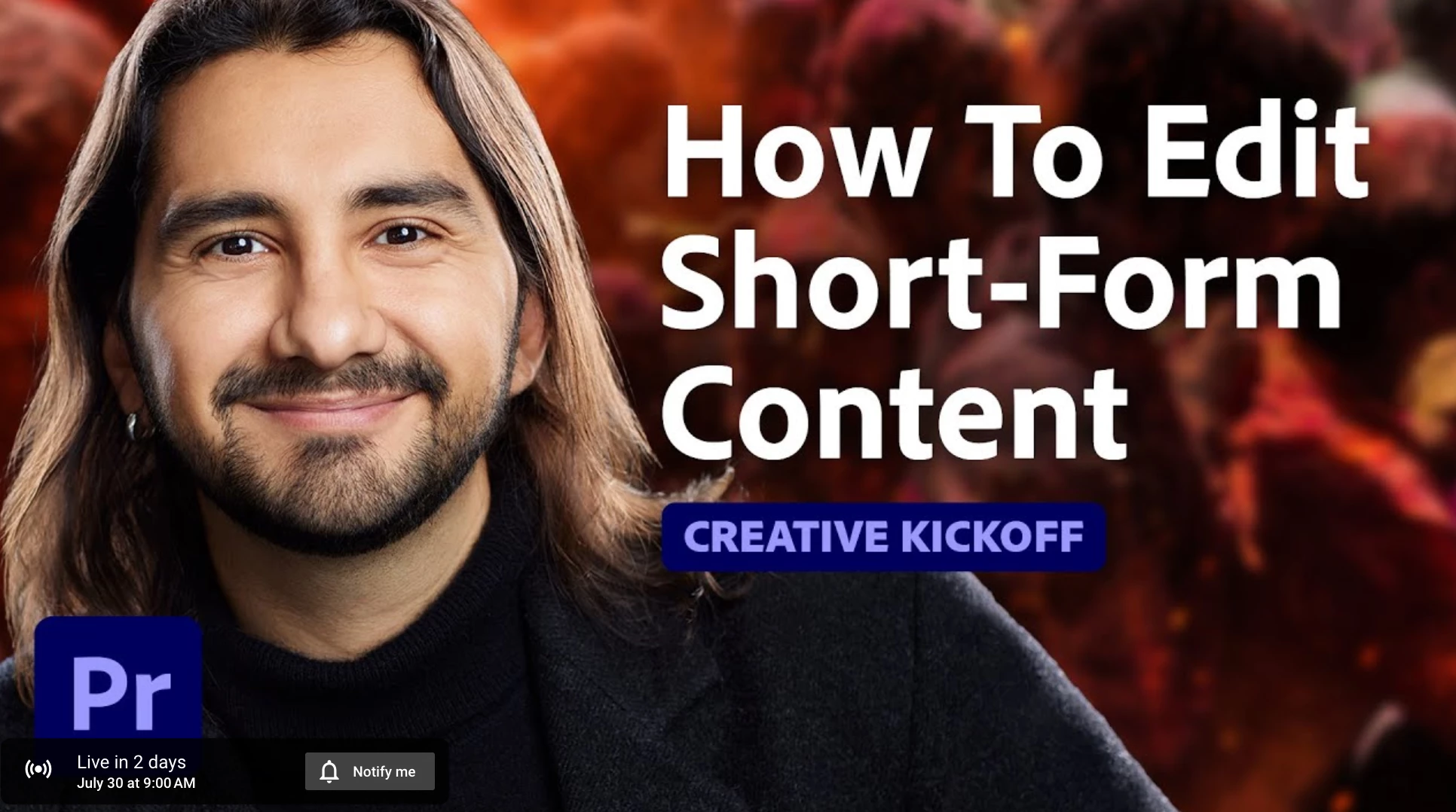 Join Esteban Toro, Senior Adobe Evangelist, as he discusses the production and post-processing of short content in Premiere Pro. This session will cover the essentials of creating engaging short-form videos, from initial production setup to advanced post-processing techniques.