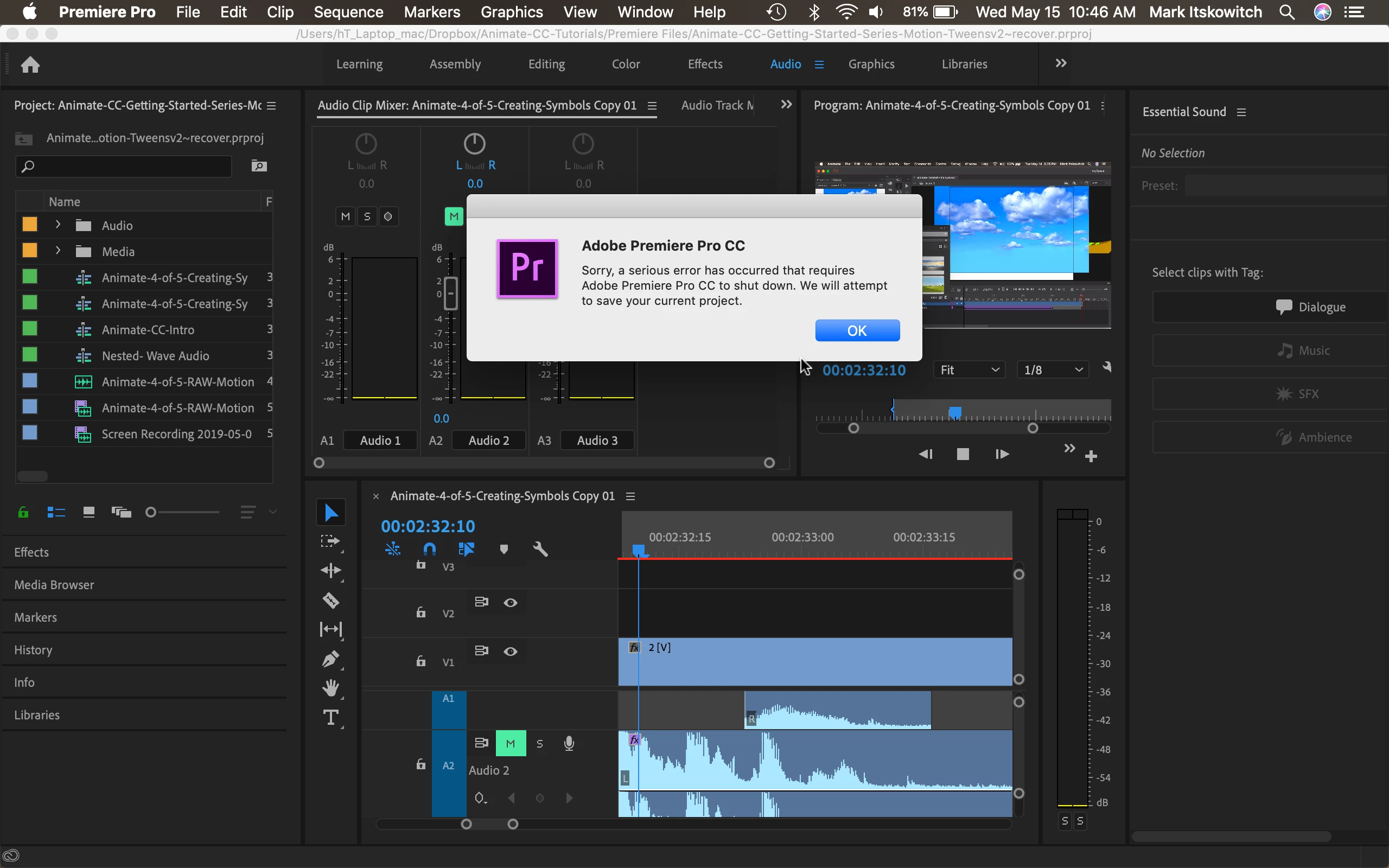 I'm not sure what is happening. First I received a random message about an audio filter not loading.... and now I can't even edit. The app quits after 2 minutes or less.....I have updated Premiere, cleared the cache, cleared the preferences, deleted the entire adobe premiere file in the documents folder, I rebooted, ran disc utility, updated cuda driver, rebooted again, tried changin preview file type .... all to no avail.... just keeps crashing!