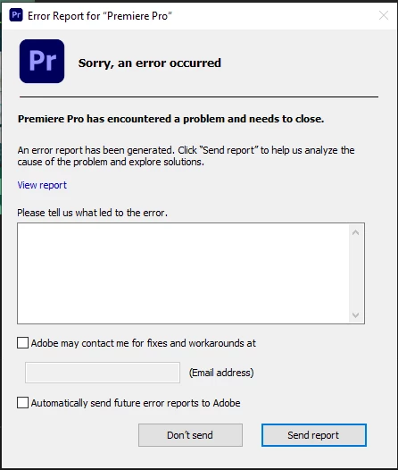 I recently just downloaded Premiere Pro for the first time, but whenever I launch it, it just gives me this after about 10 seconds or so and causes it to close.