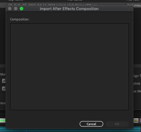 Premiere Pro Dynamic Link Will Not Relink After Effects Project