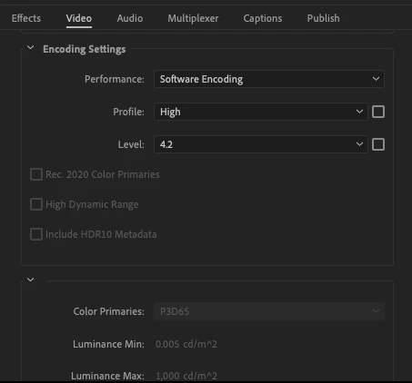 Software encoding gave me an export a tiny bit better, but still way darker than what it was supposed to be.