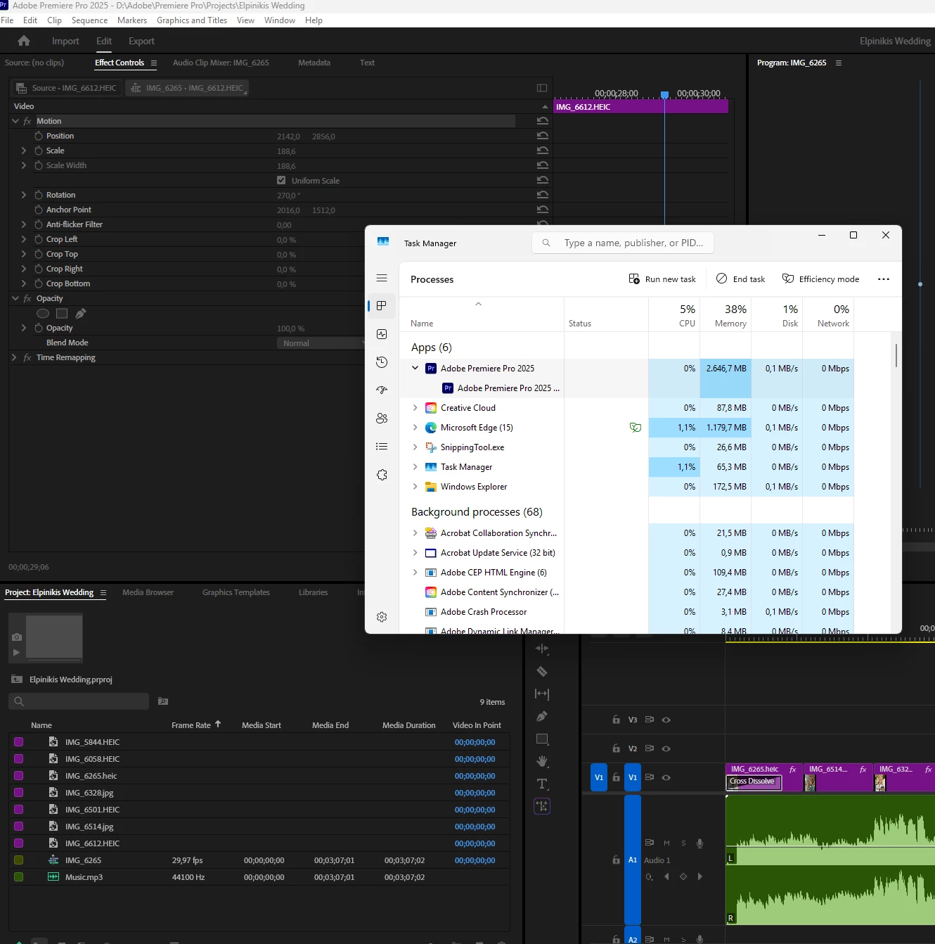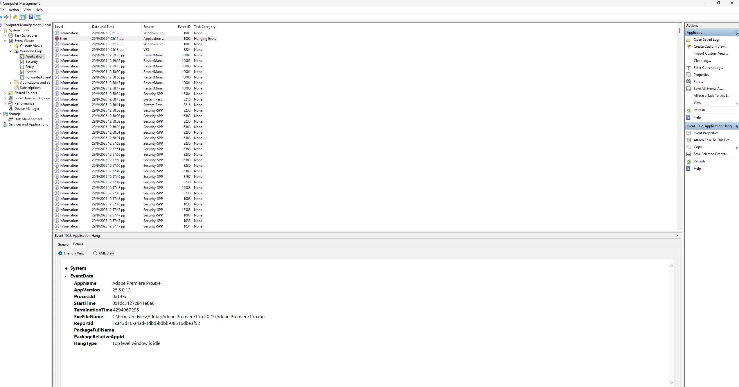 I am making a video with music. Randomly the premiere pro freezes. Not the pc or anything else. CPU, Hard disk and everything i could check works fine. It have happened several times, a few minutes after working my project. Any suggestions?