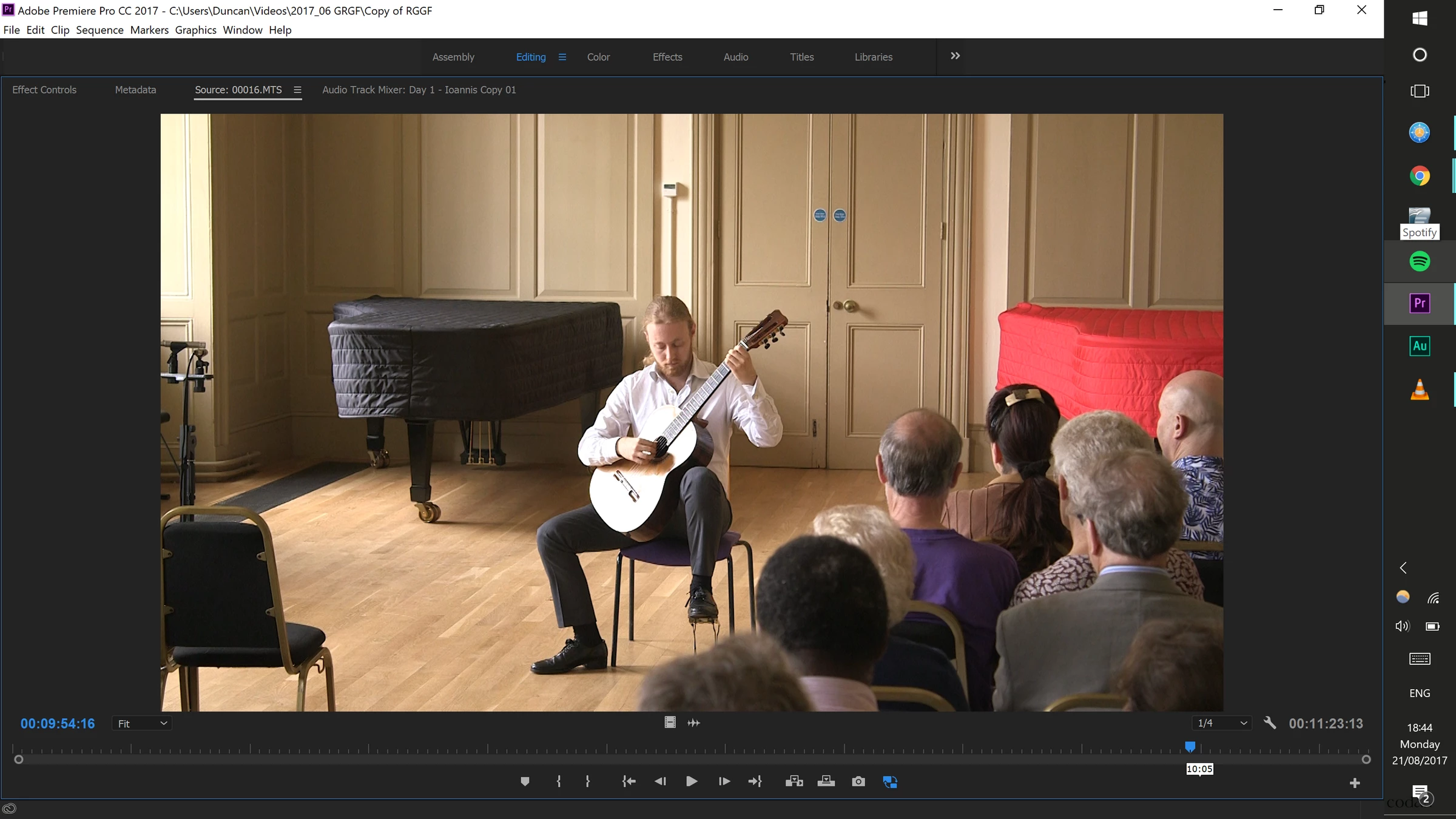 My original footage was shot on a Canon C100 with no external recorder, so AVCHD in an MTS wrapper. Halfway through this project I read up in detail about codecs and so transcoded some of the later files to DNxHD and created proxies (with corresponding , but this is the original stuff.