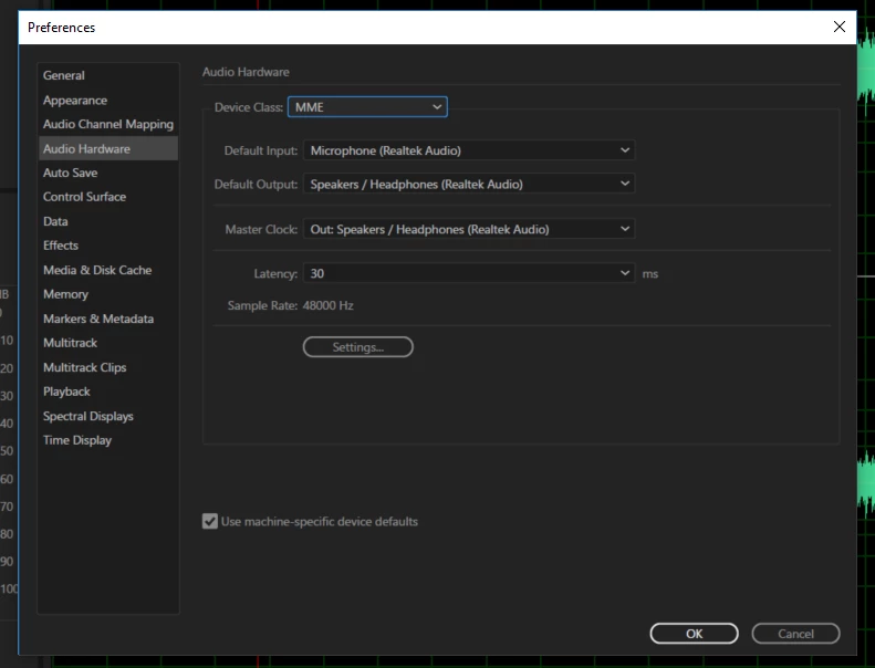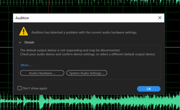 Then I get a warning >> "Audition has detected a problem with the current audio hardware settings".