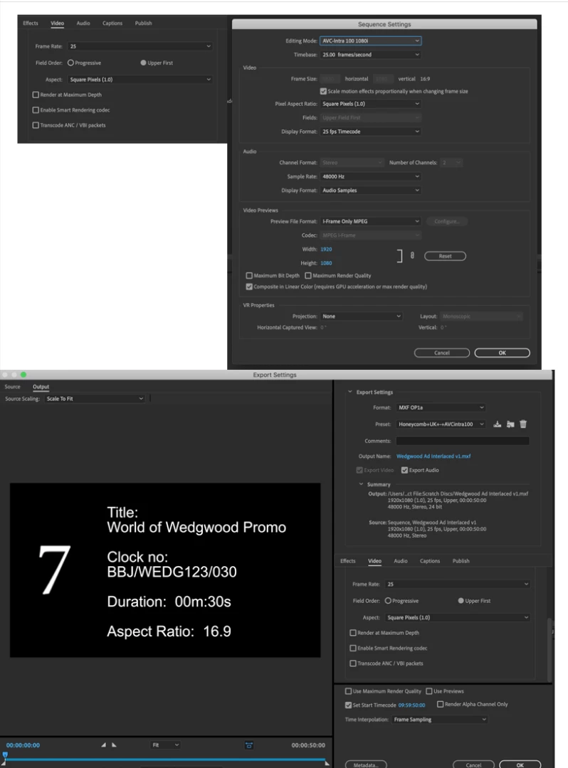 Premiere Pro, ITV HD settings, Clearcast and Vidchecker
