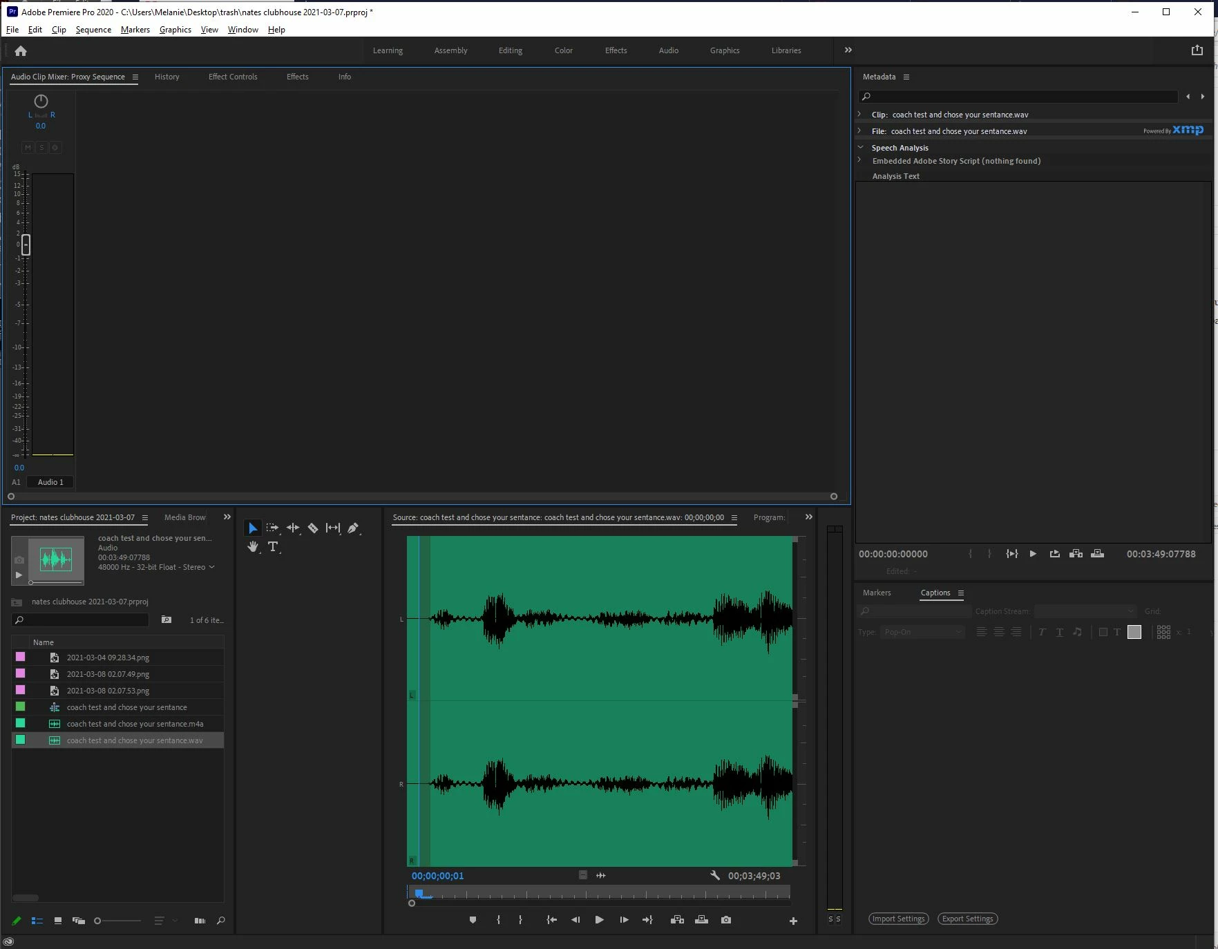 step 3 it says "To analyze a single track for speech, select the clip that you want to analyze and then click Analyze in the Speech Analysis section of the Metadata panel."