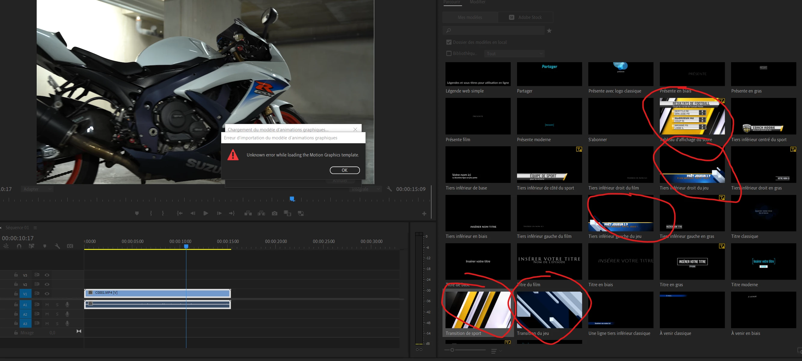Premiere Pro n'importe aucun fichier MOGRT, même certains fichiers MOGRT intégrés d'Adobe