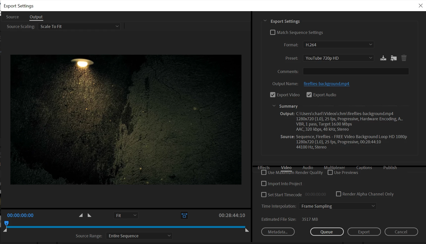 It's an odd one. Something that you can do to help out with getting answers is to post what your sequence is, premiere version and system specs. If I were to guess to do anything, I would clear the media cache first and try again. The second thought that goes through my head is how this sequence was made. It's titled free fireflies and I'm guessing they aren't real ones? Maybe made in after effects and the comp imported to premiere? Not sure, but 5 gigs for 720p video seems like a long video and I didn't imagine fireflies hung around a light that long.