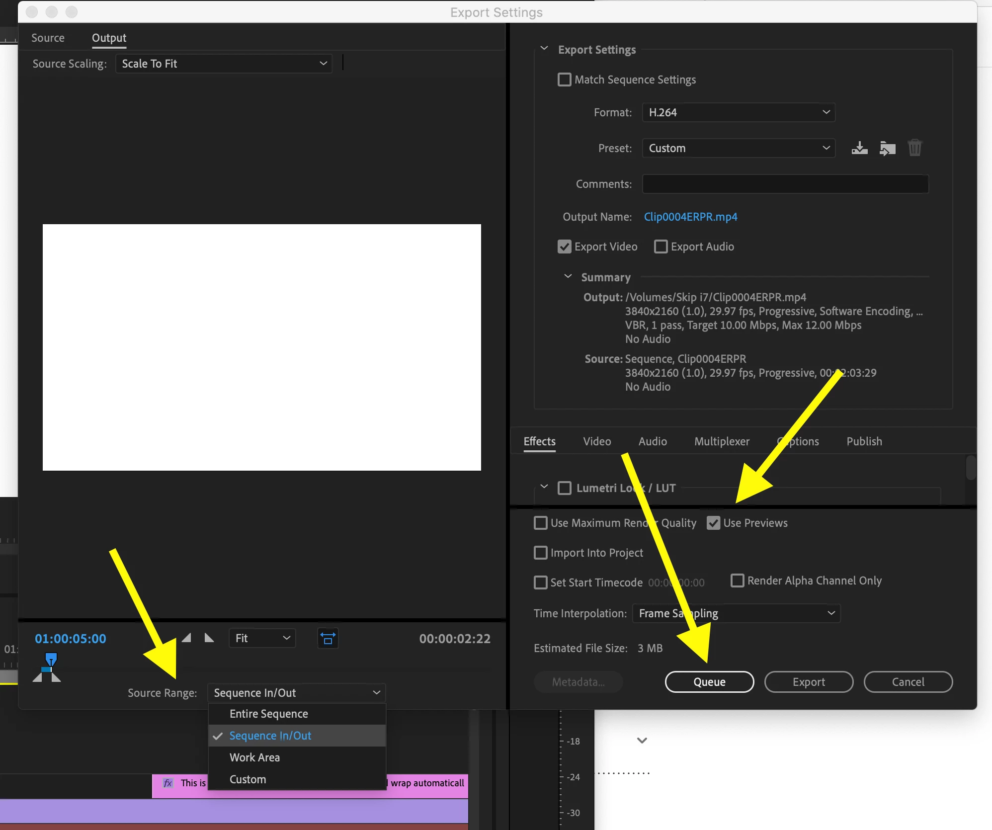 Now repeat for the next session on the timeline, and repeat again as needed. Once you've got everything Queued in Media Encoder, start the encoding process.