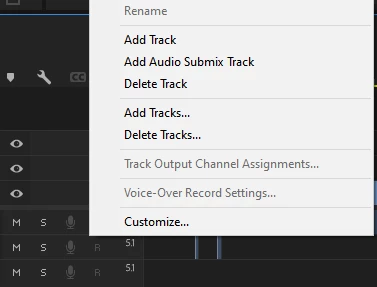 The recording button is greyed out so I cannot record audio, the enable track for recording also is greyed out, and the voice-over record settings is greyed out.