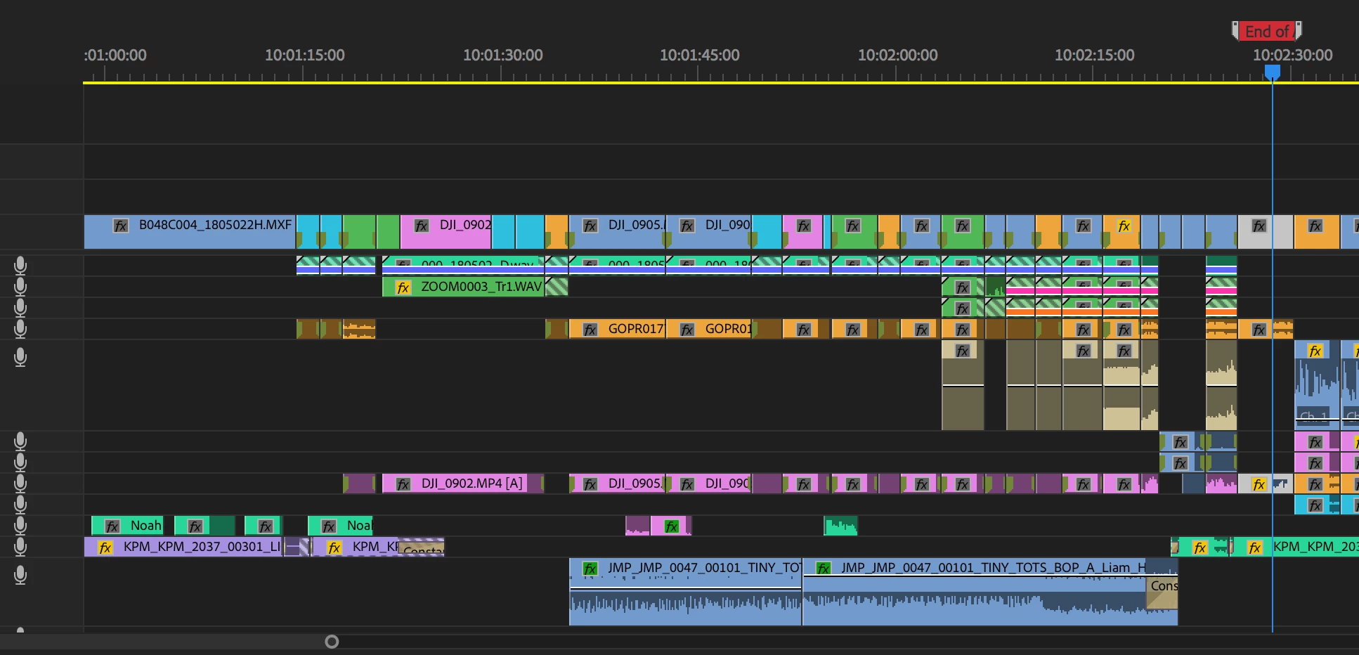 All clips on Track 1 are referencing from one long .wav audio clip (4hrs) that was used as a sync guide on the shoot.