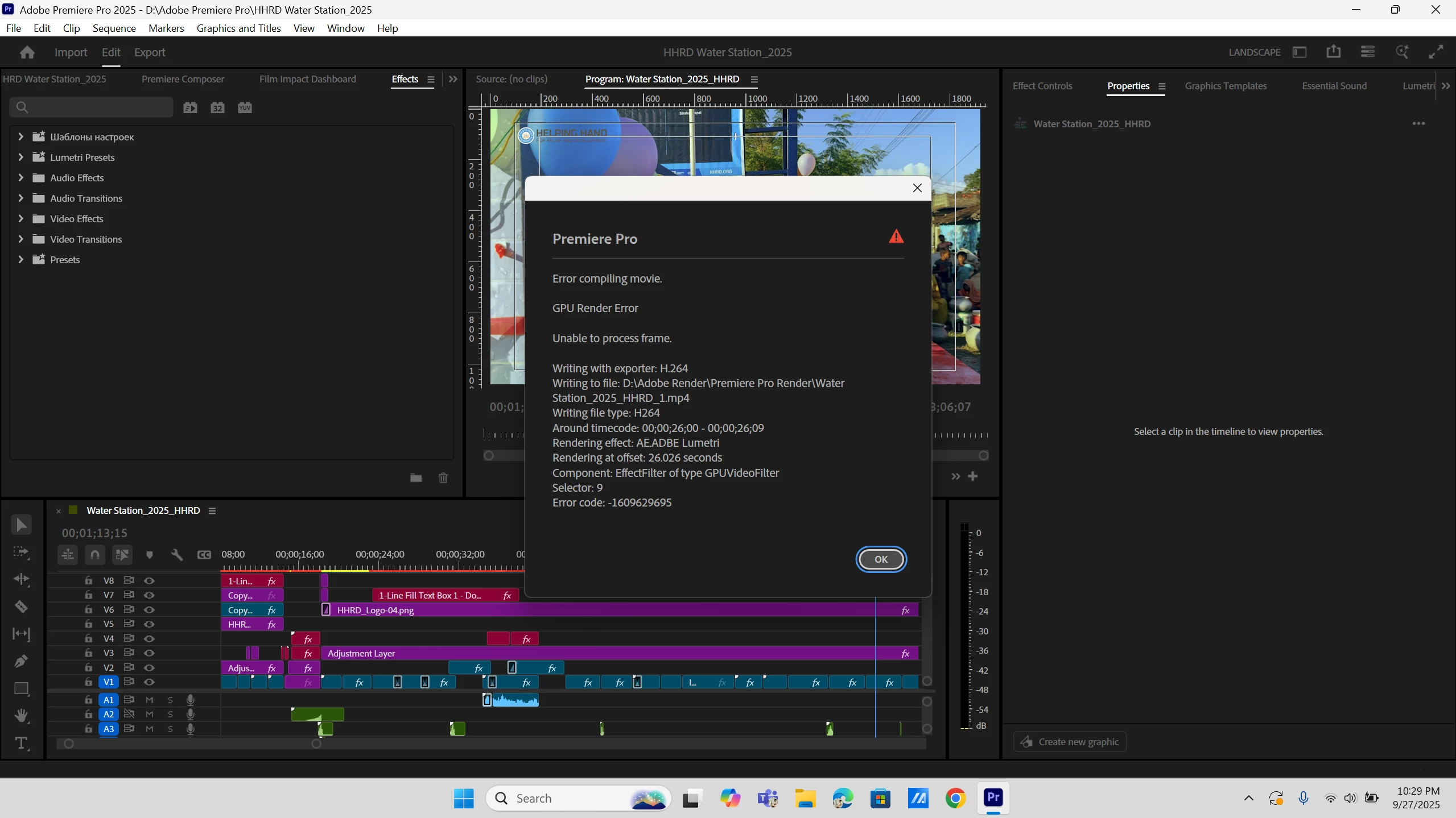 Premiere Pro Render Error with Lumetri Color Effect