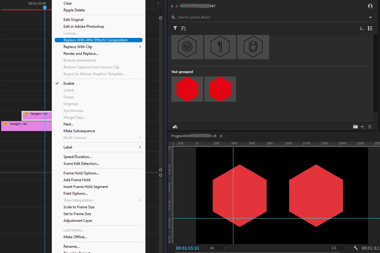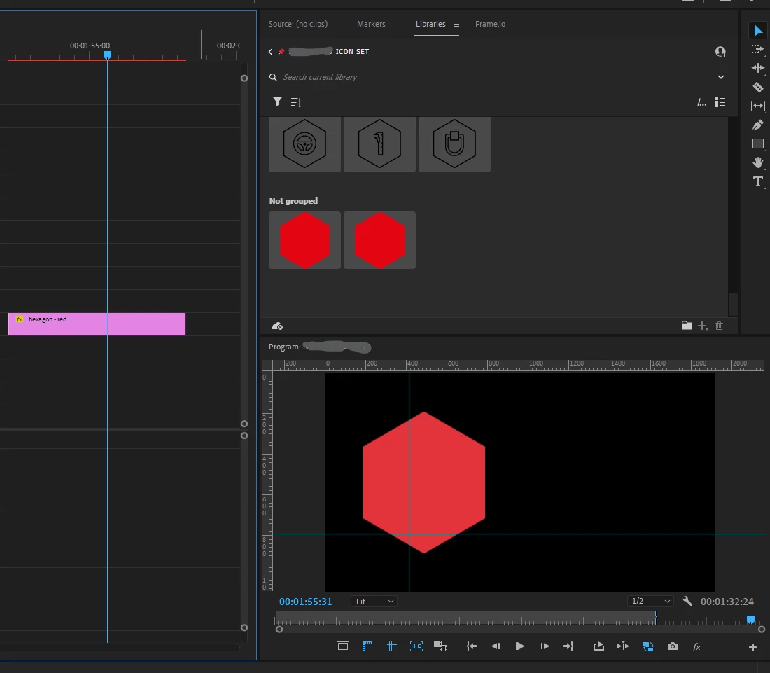In Premiere Pro, the hexagon is the right color in the Libraries panel but in the timeline it looks more pink then red. I can't get the file to be the right color on the timeline!