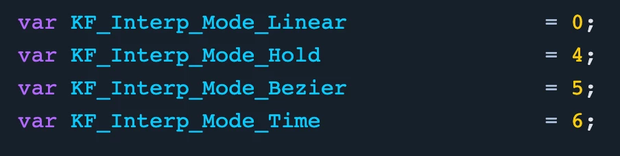 here is simplyfied code below, I want to interpolate a keyfreme, there are several types of interpolation, but I can't make it work with any of them.