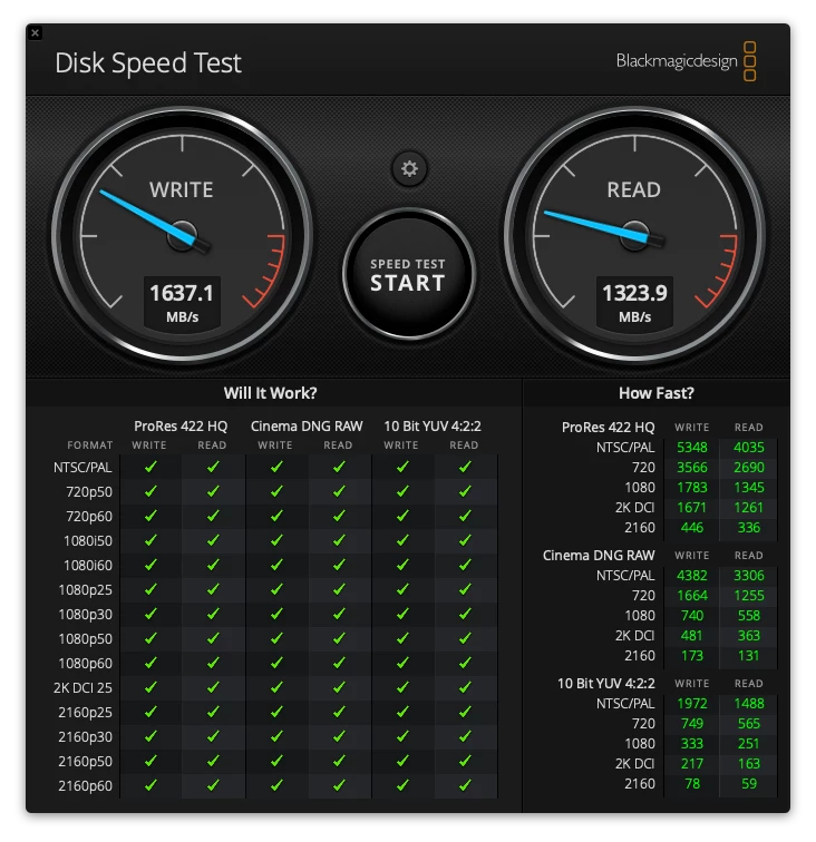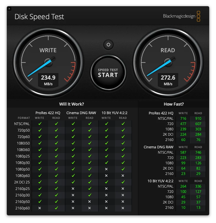 From a basic level, I can see what's happening but if you can help me decode further and what steps would be best to move forward and actually be able to edit, that would be amazing. To clarify, all of my media / project files are on the external hard drive - but is this BM Disk Speed Test testing out my external hard drive speeds or computer hard drive speeds? Thanks!
