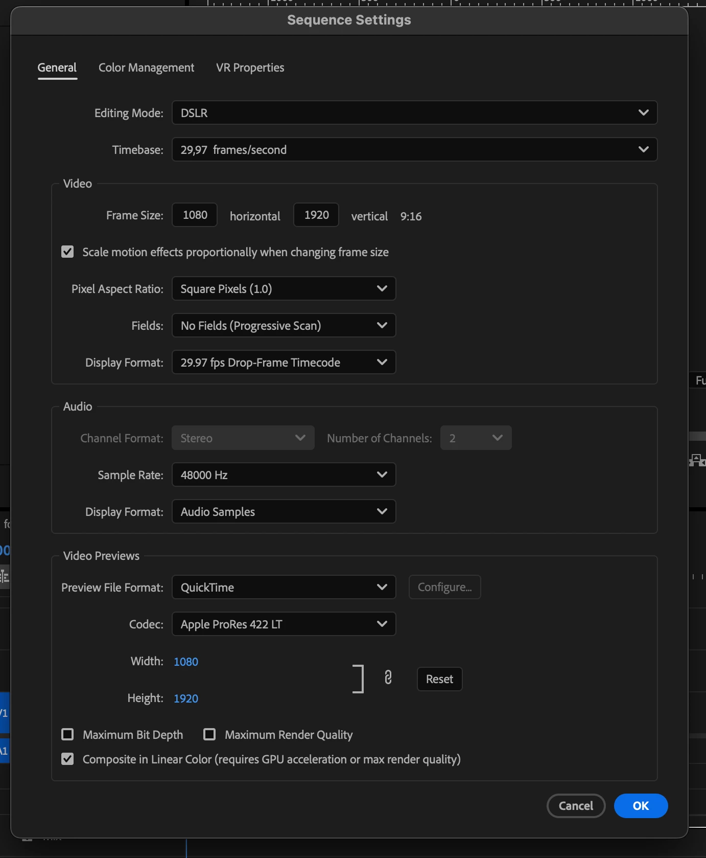 - Sequence Settings (it's the same with all sequence I tried):