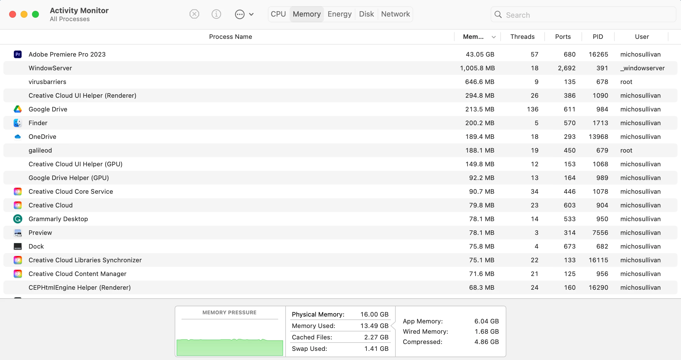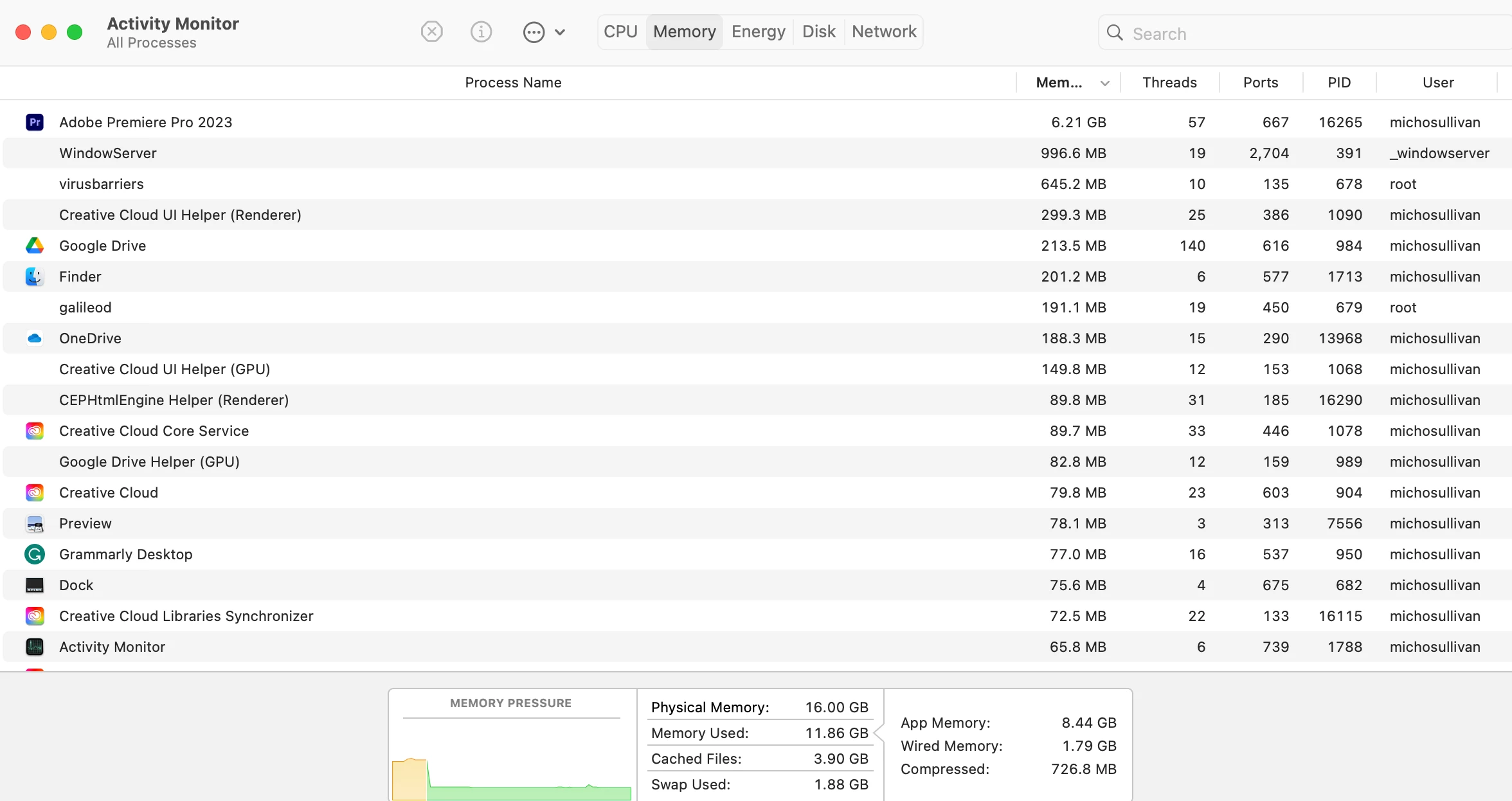When I open the project and start working on it, Activity Monitor tells me: 6.21GB Memory Used