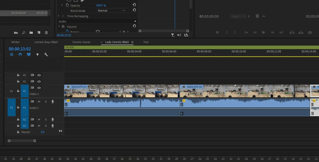 PS You can see in the picture I attached, in the first 00025.mts video file that there is no audio track on the right channel. Plus you can see at about 00:00:04:00 where the audio drops out and then the audio matches the video from here on out. In the second clip (00025.mts) there is no audio waveform on the right channel and the audio doesn't even match the video at all (it's from one of the other 00025.mts files).