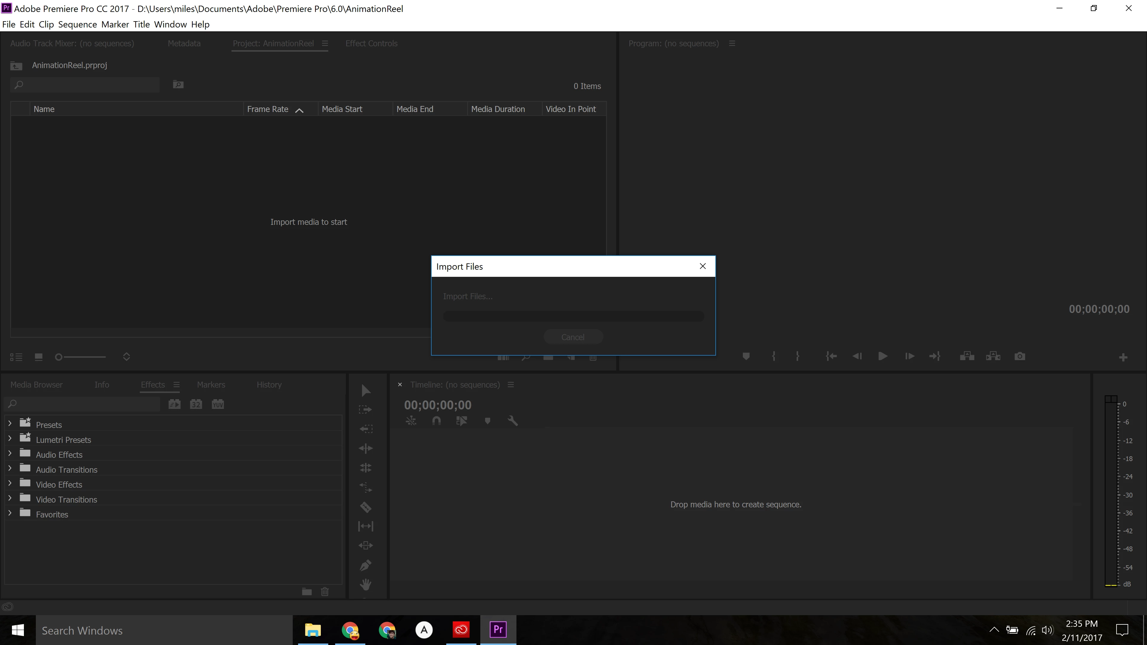 Premiere stuck when importing AE files