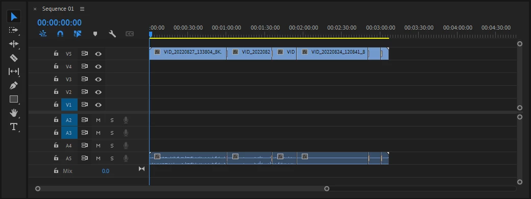 I have a basic understanding of Premiere Pro, I've been using 'i' and 'o' to gather the clips needed when the video needs trimming down, but pretty much, this is just 4 videos, 5 video clips in the sequence;