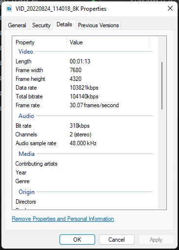 All of our videos have been recorded in 8k at 30fps, please see example below;
