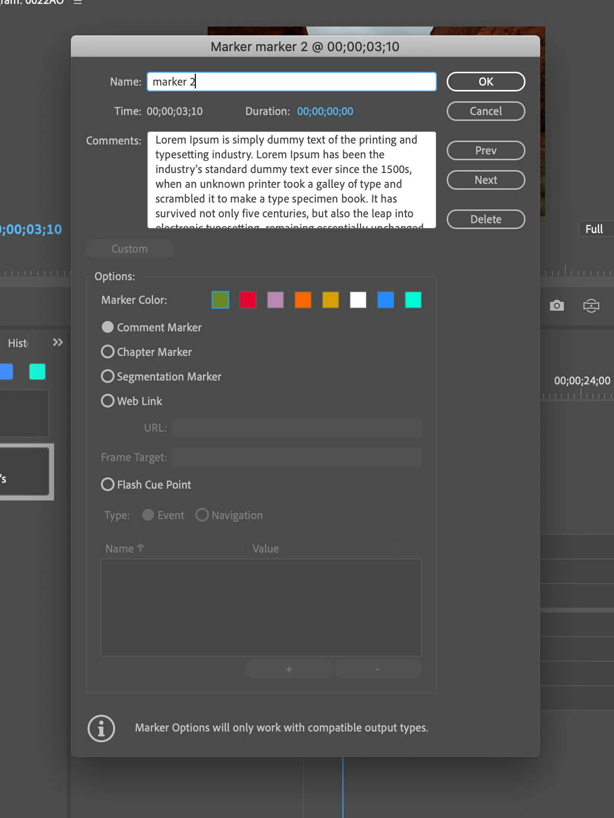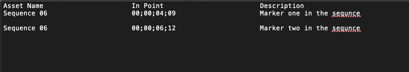 Printing list of markers on timeline